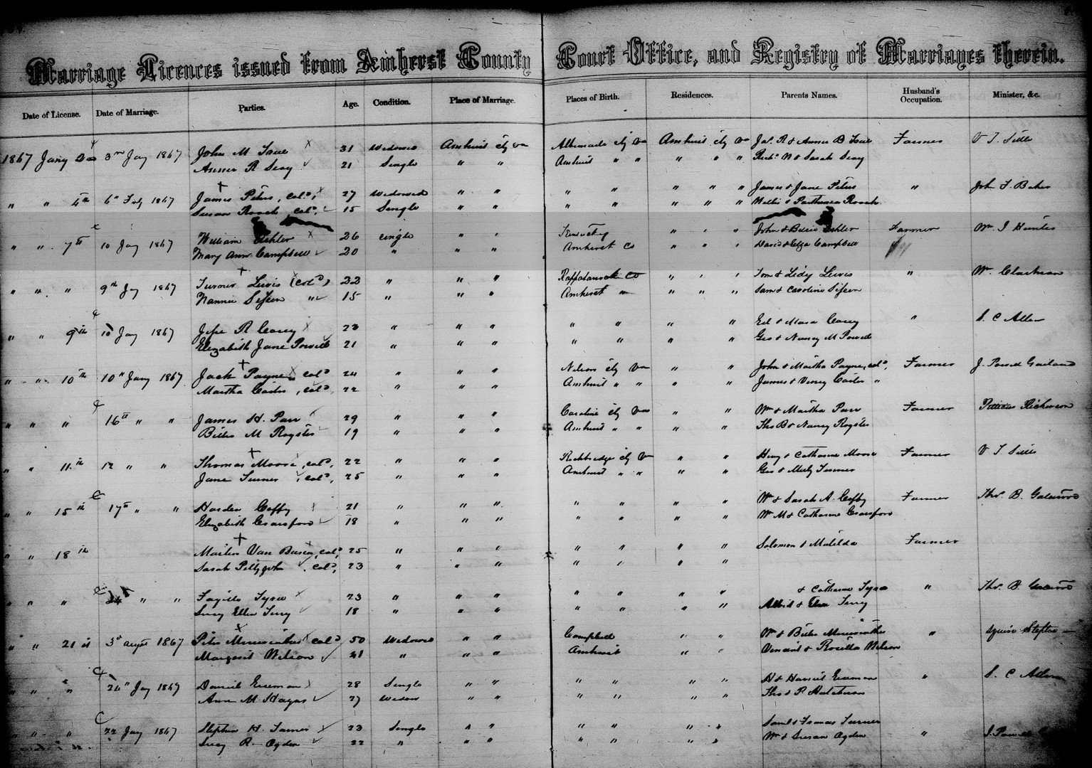 S1620--Marriage Register--Amherst Co VA--Ashler-Campbell--7 Jan 1867
