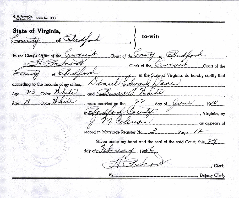 S1340-1910-06-22-Marriage Cert-Daniel Davis and Bessie White