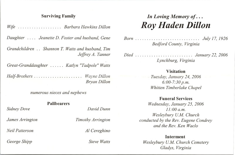 S1698-Funeral Card--Roy Haden Dillon