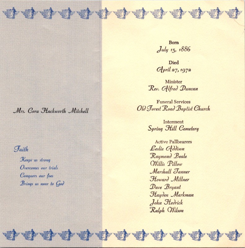 S1706-Funeral Card--Cora Hackworth Mitchell