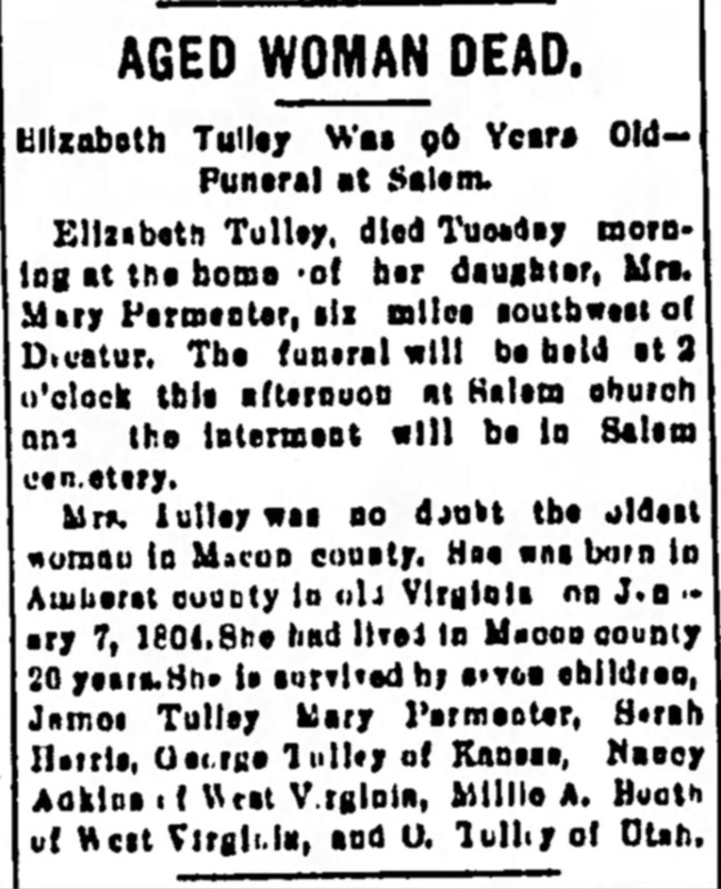 S0671 - The Decatur Herald - 5 Dec 1900 - Elizabeth Tulley obituary