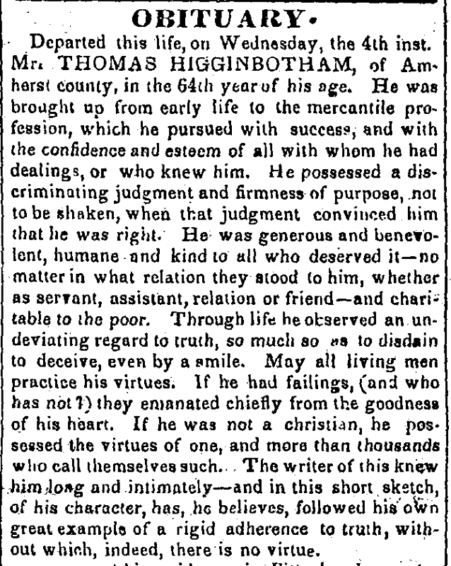 S0706--Obit--1835-02-16--Lynchburg Virginian--Thomas Higginbotham