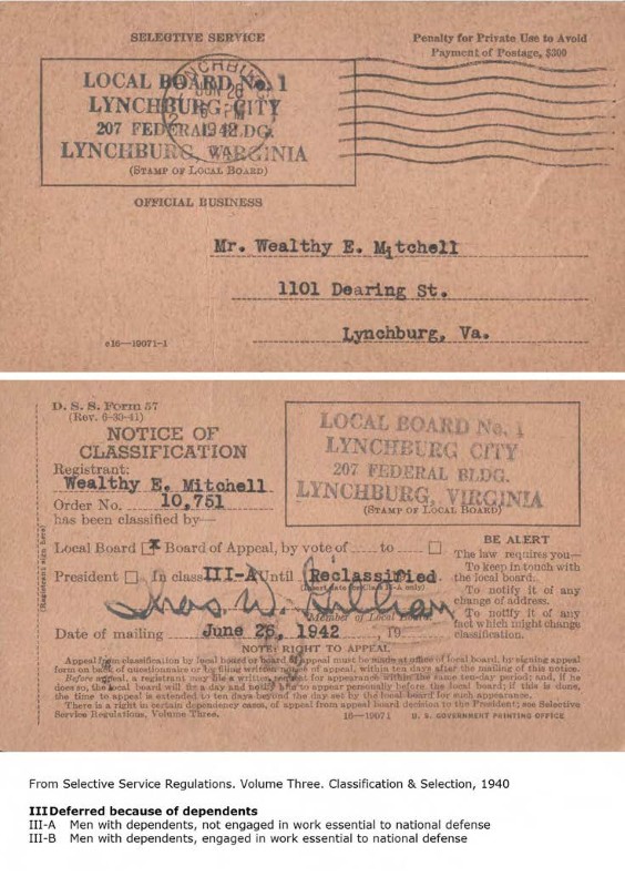 S0544 - Military - 1942-06-26 - Wealthy E. Mitchell - Selective Service Classification Card