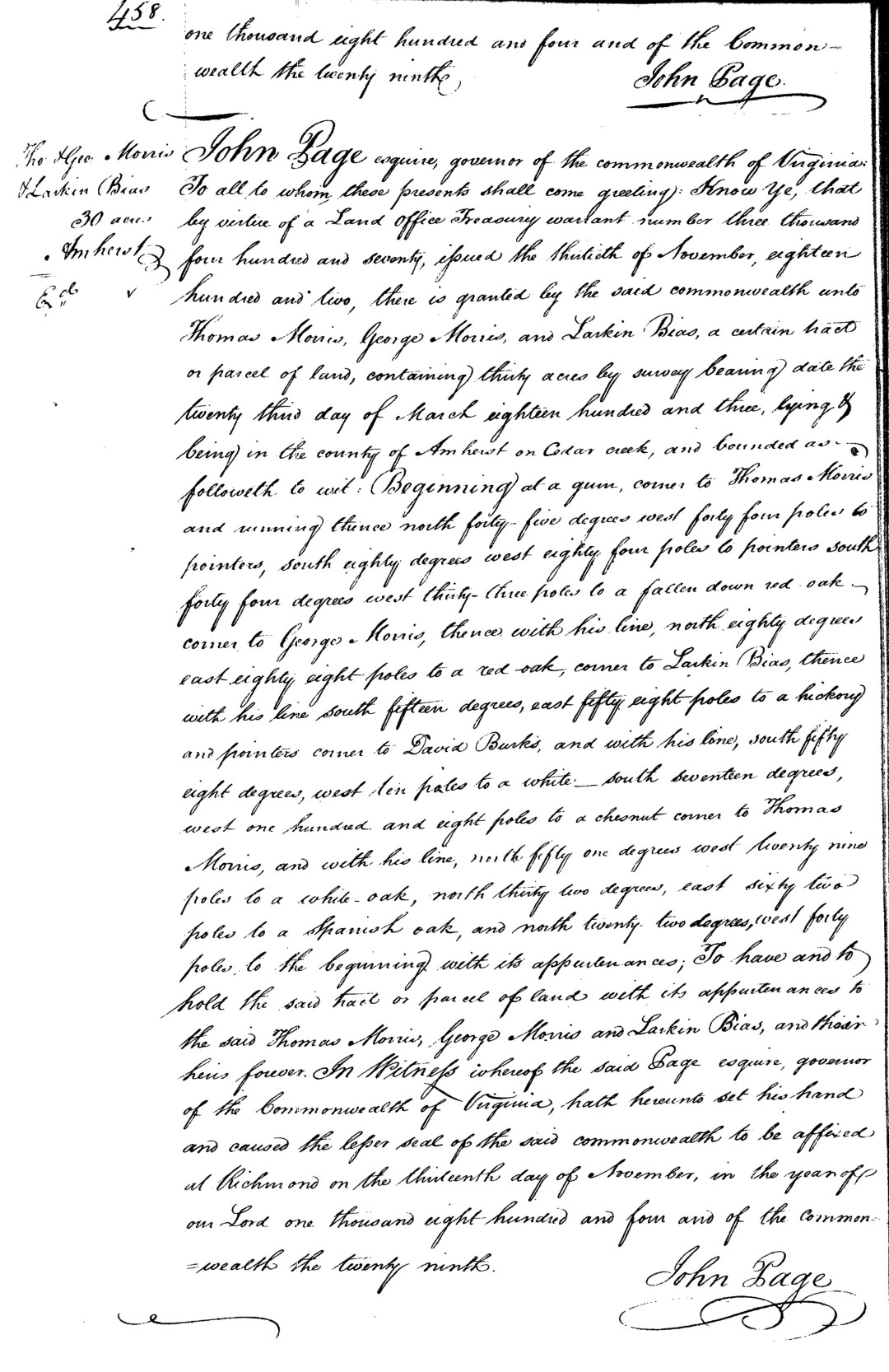 S1891--Land Grant--1804--Virginia--Larkin Bias--p458