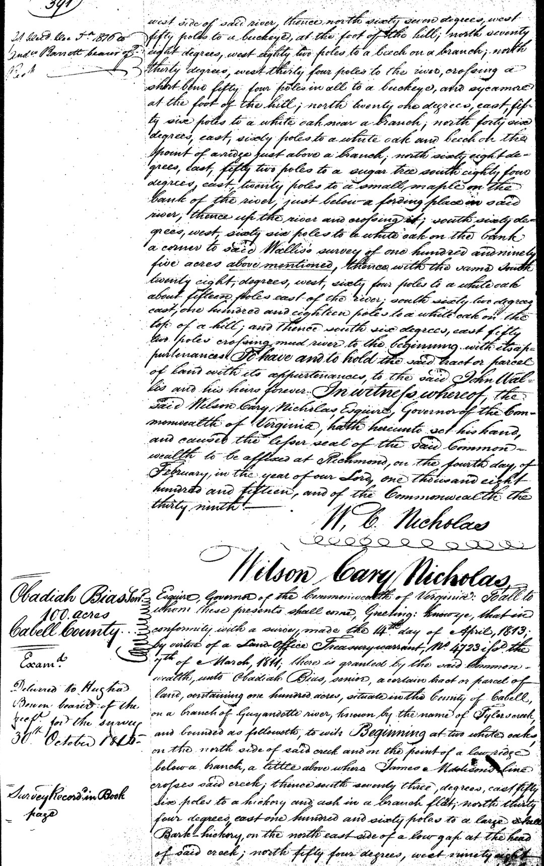 S1892--Land Grant--1815--Virginia--Obadiah Bias--p391
