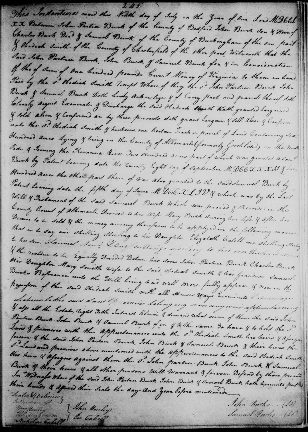 S1033--Deed--1770--Albemarle Co. VA--Burk to Smith--p245