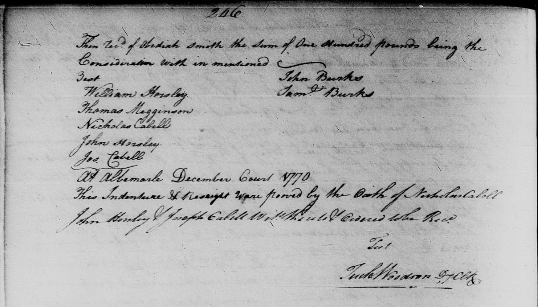 S1033--Deed--1770--Albemarle Co. VA--Burk to Smith--p246