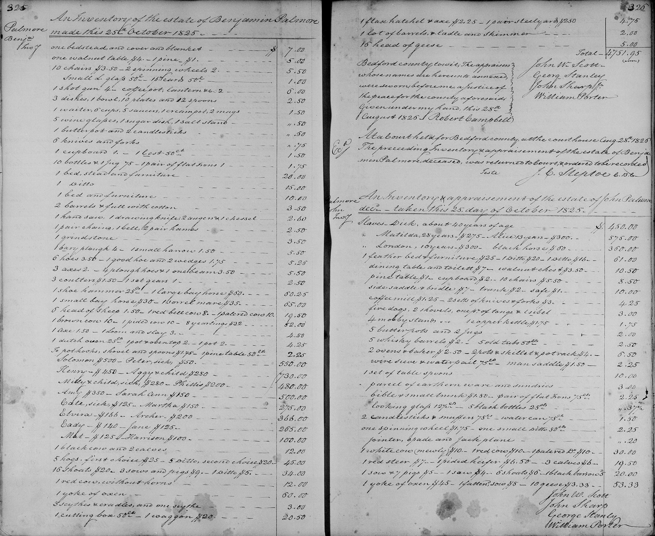 S2038--Inventory--1825--Bedford Co. VA--Benjamin Palmore