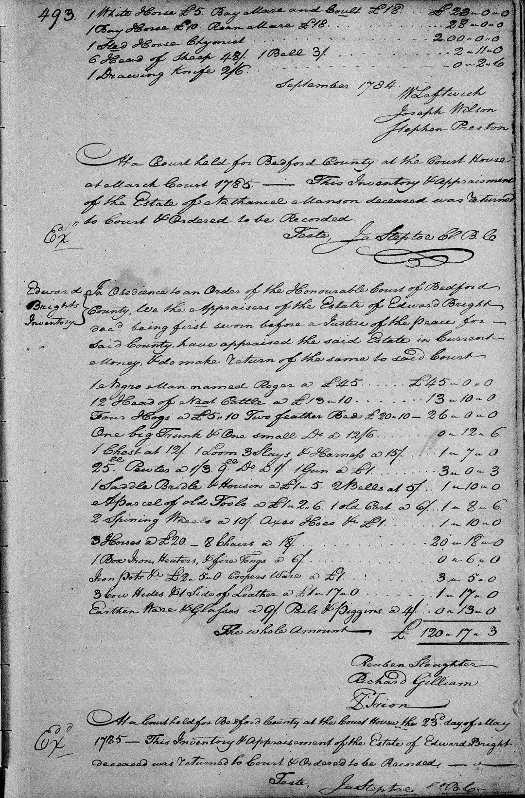 S2066--Inventory--1785--Bedford Co. VA--Edward Bright