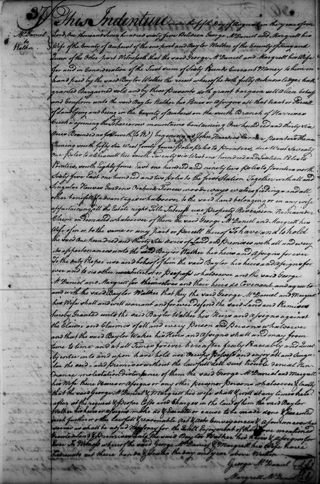 S2080--Deed--1765--Amherst Co. VA--McDaniel to Walker--p37
