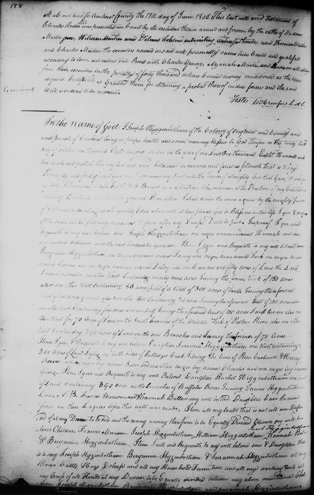 S2154--Will--1802--Amherst Co. VA--Joseph Higginbotham--p178