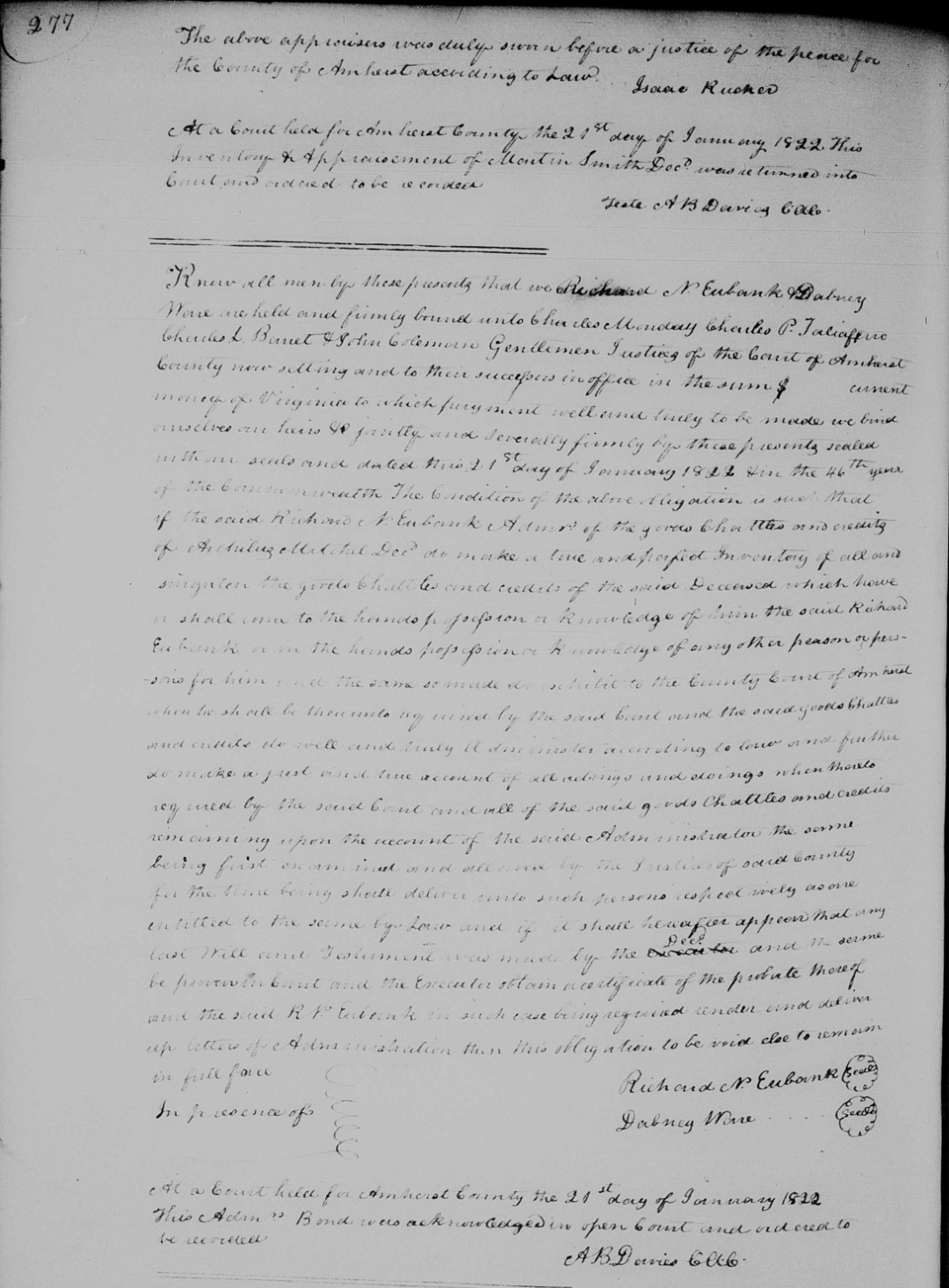 S2150--Bond--1822--Amherst Co. VA--Archelaus Mitchell